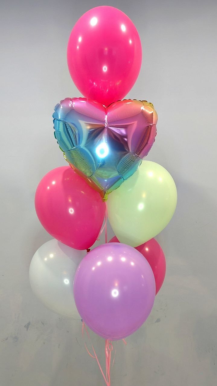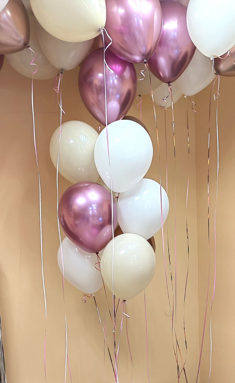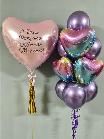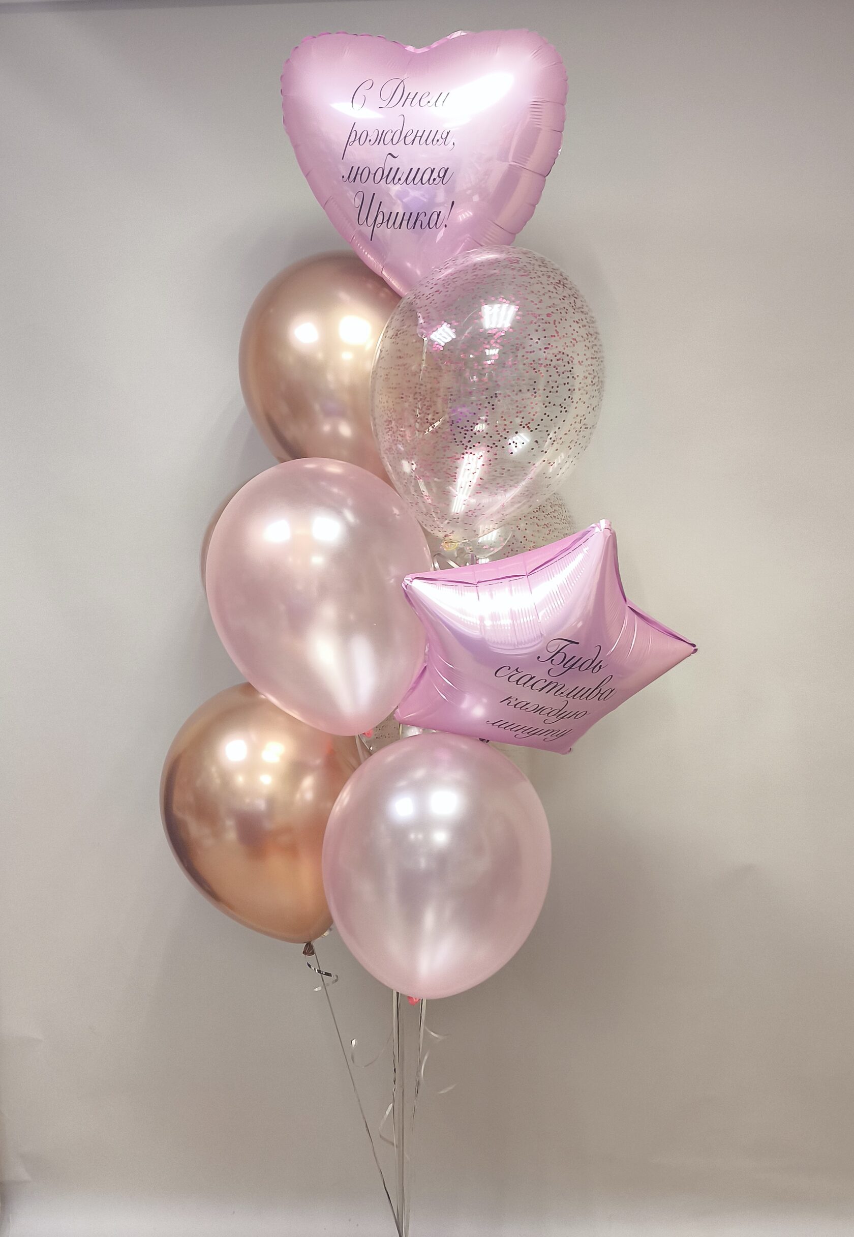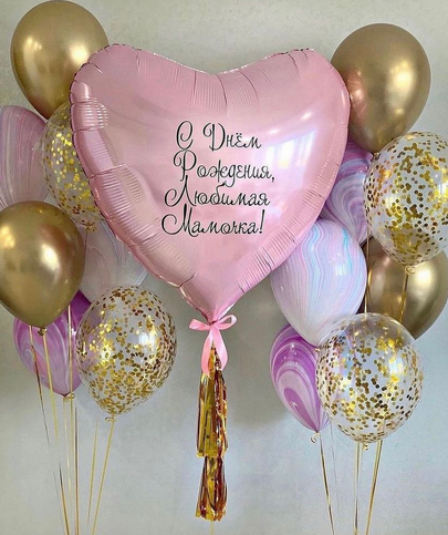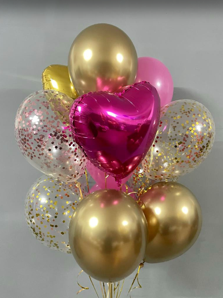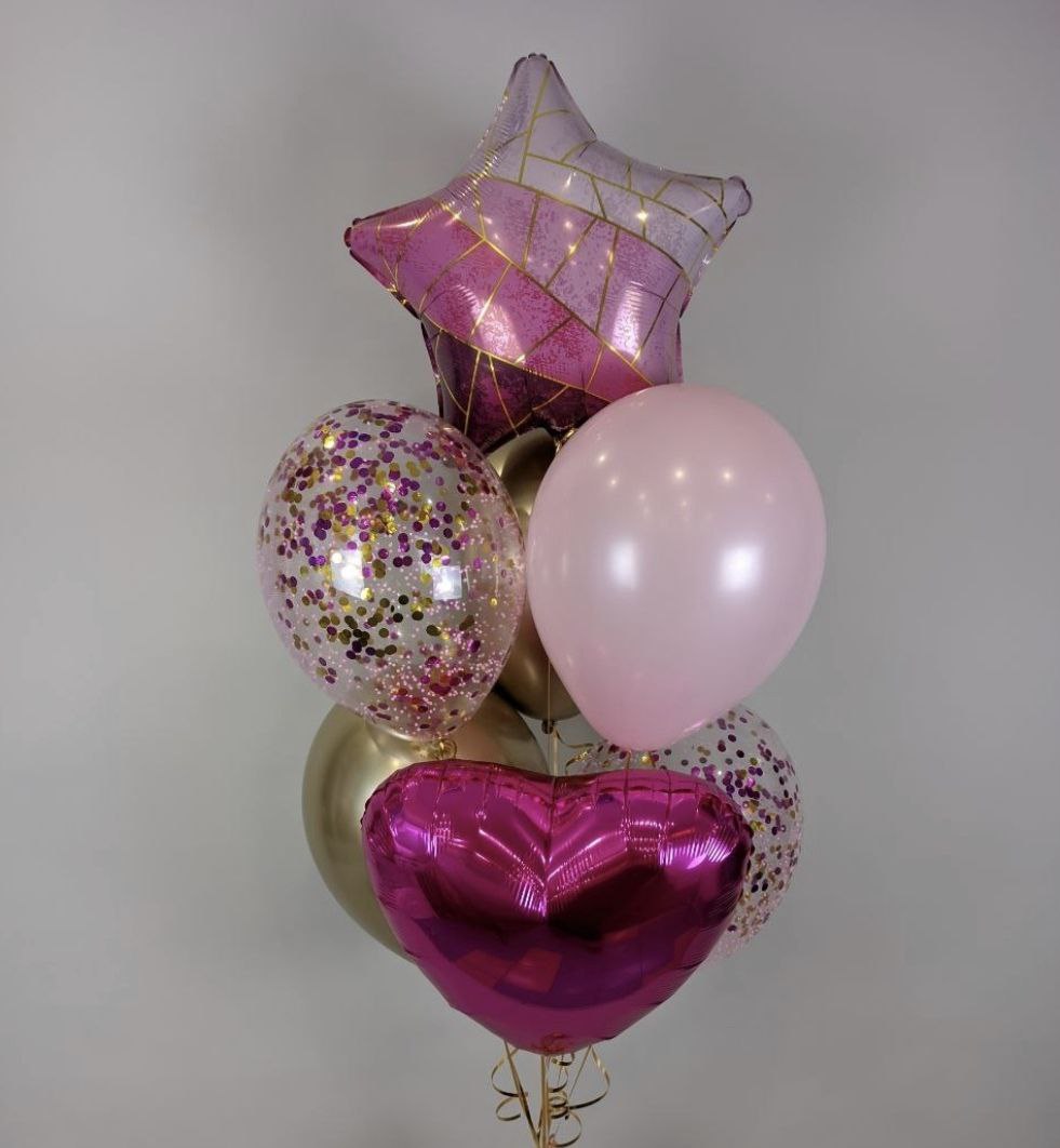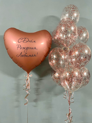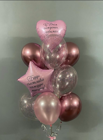 -Шар Сердце 18"/45см с индивидуальной надписью 1шт -Шар Звезда 18"/45см с индивидуальной надписью 1шт -Шары Хром 4шт -Шары с конфетти 3шт -Шар перламутровый розовый 1шт