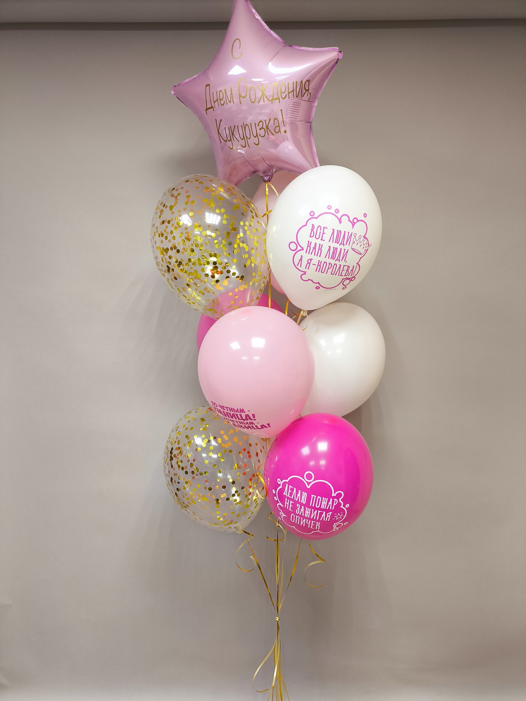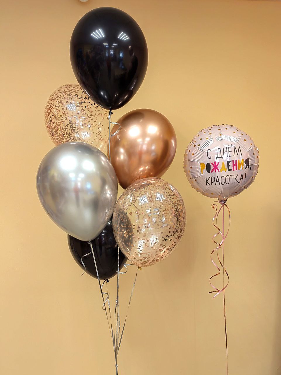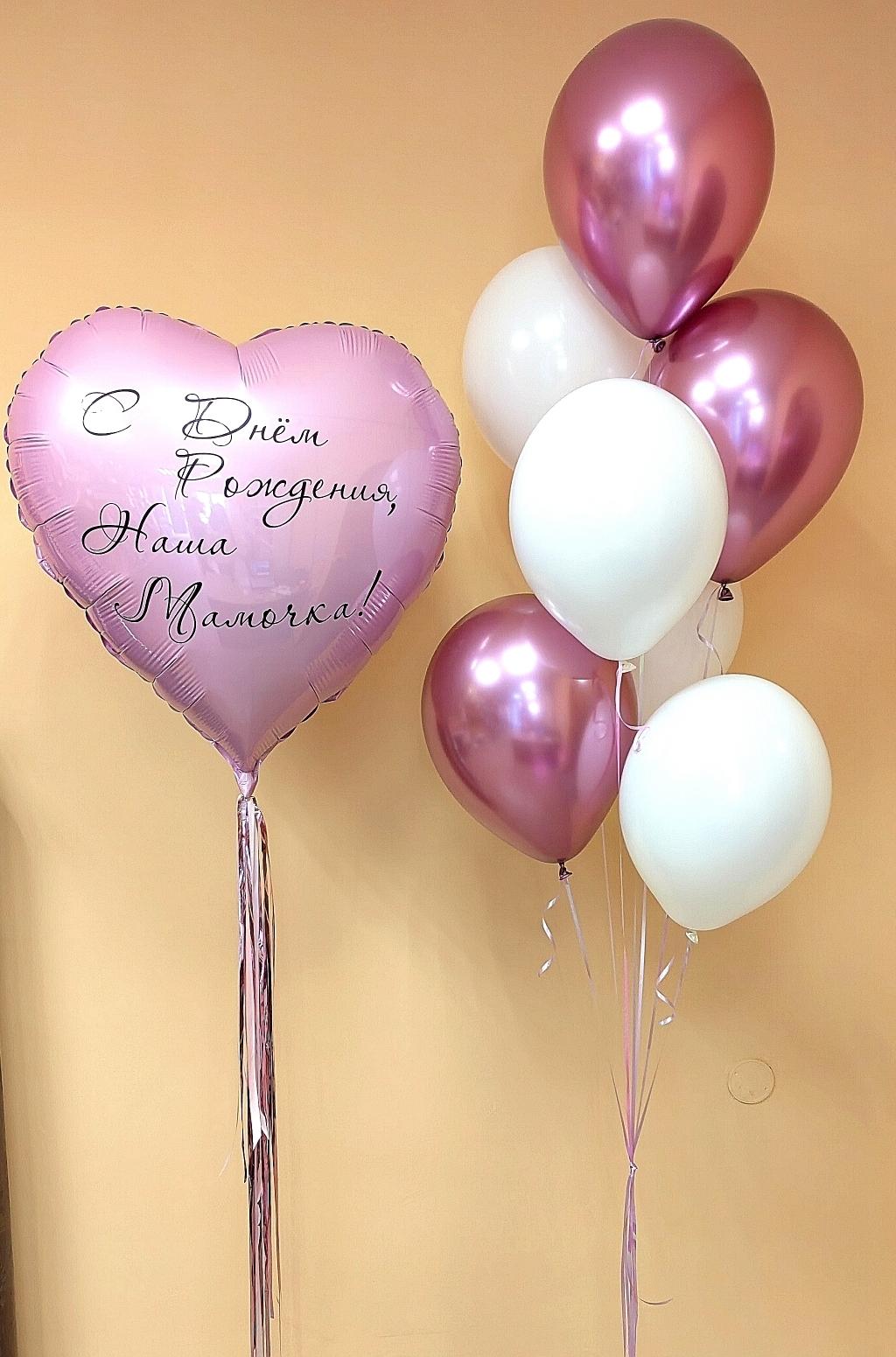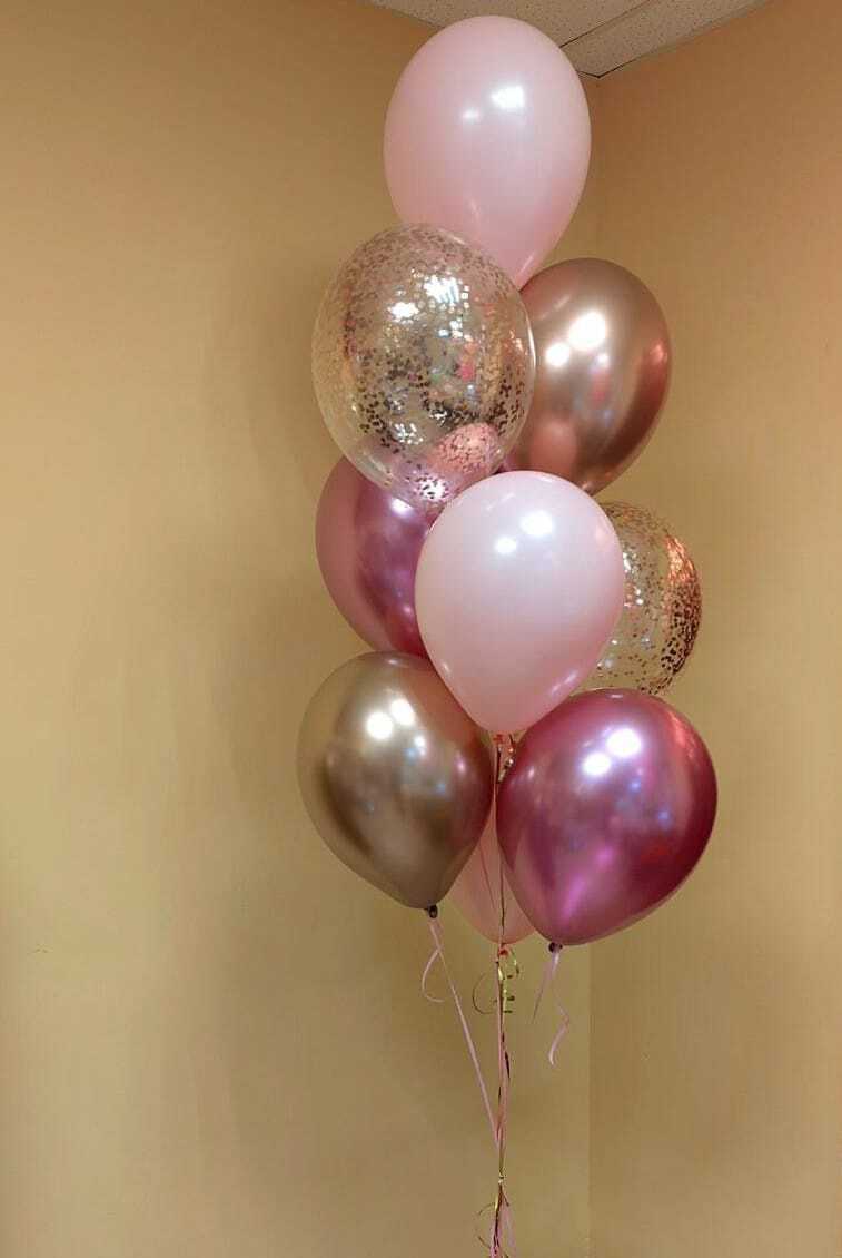 -Шар Сердце 18"/45см с индивидуальной надписью 1шт -Шар Звезда 18"/45см с индивидуальной надписью 1шт -Шары Хром 4шт -Шары с конфетти 3шт -Шар перламутровый розовый 1шт