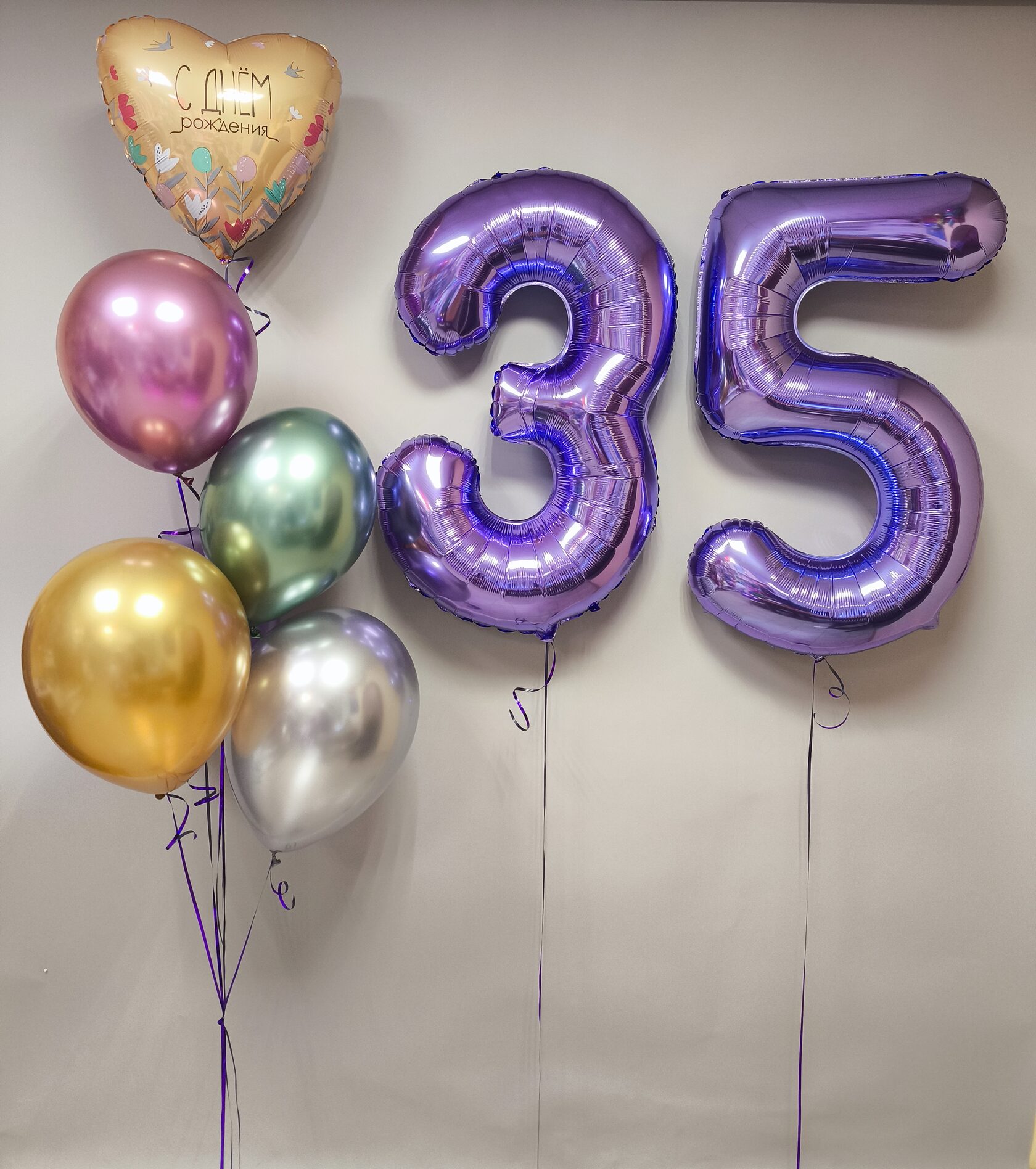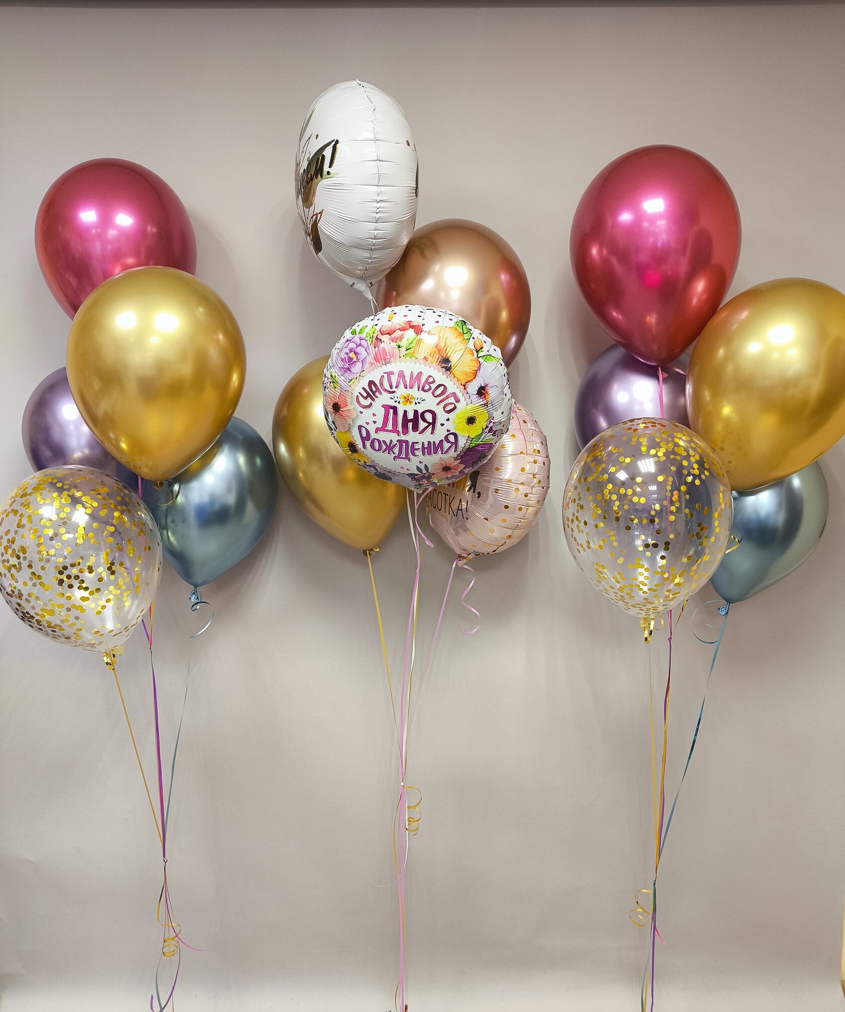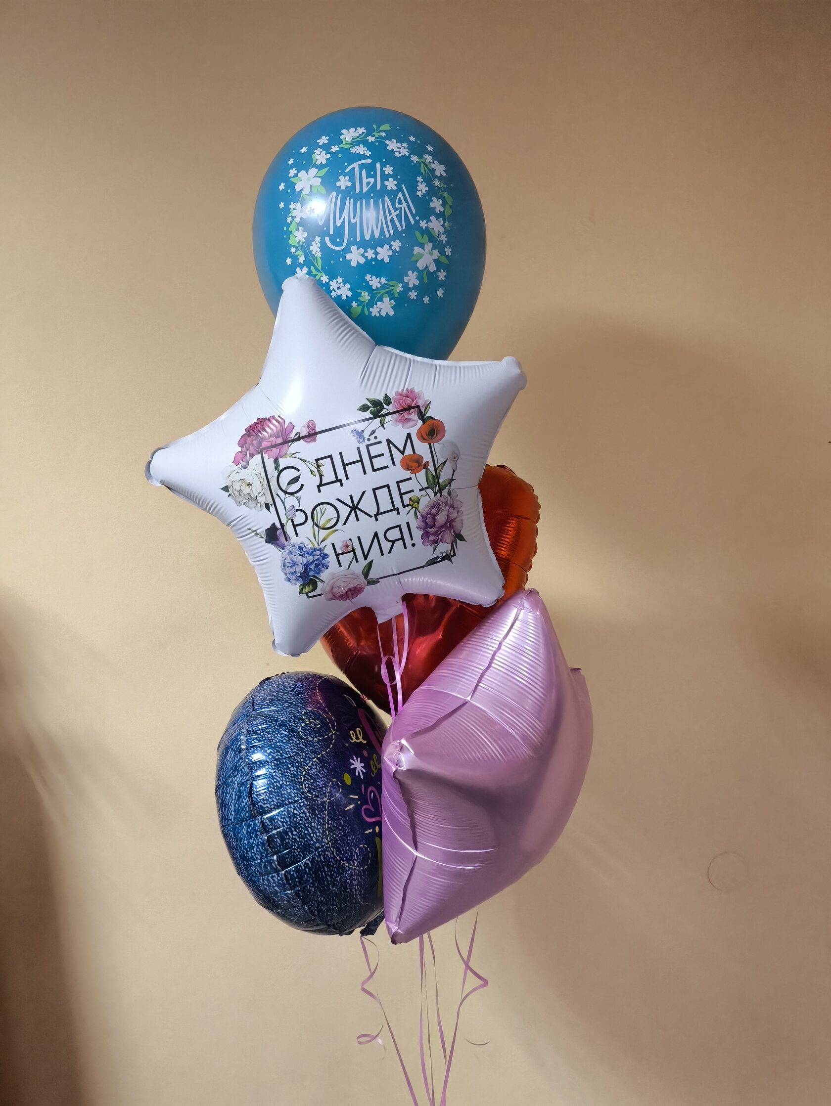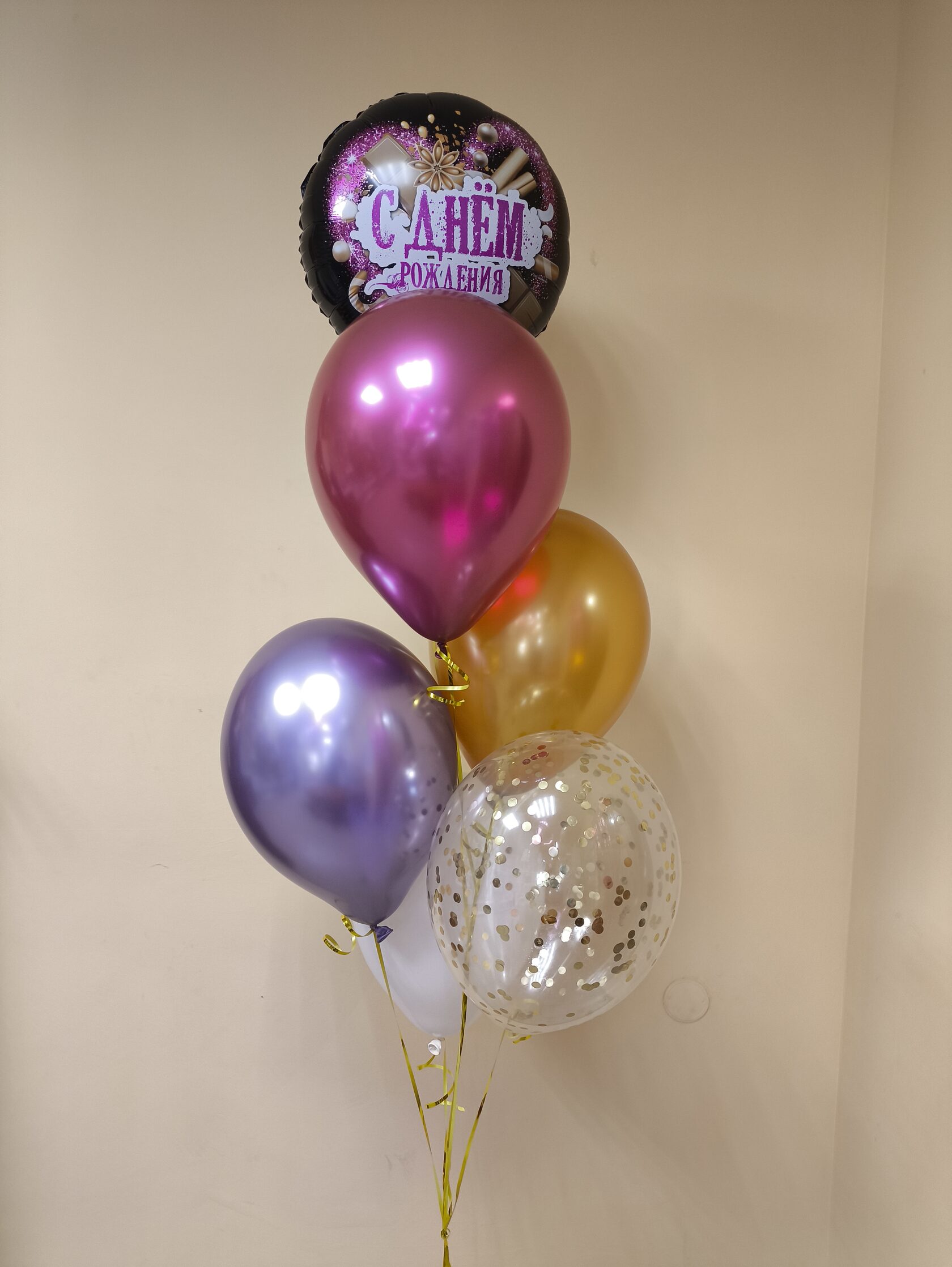 -Шар Сердце 18"/45см с индивидуальной надписью 1шт -Шар Звезда 18"/45см с индивидуальной надписью 1шт -Шары Хром 4шт -Шары с конфетти 3шт -Шар перламутровый розовый 1шт