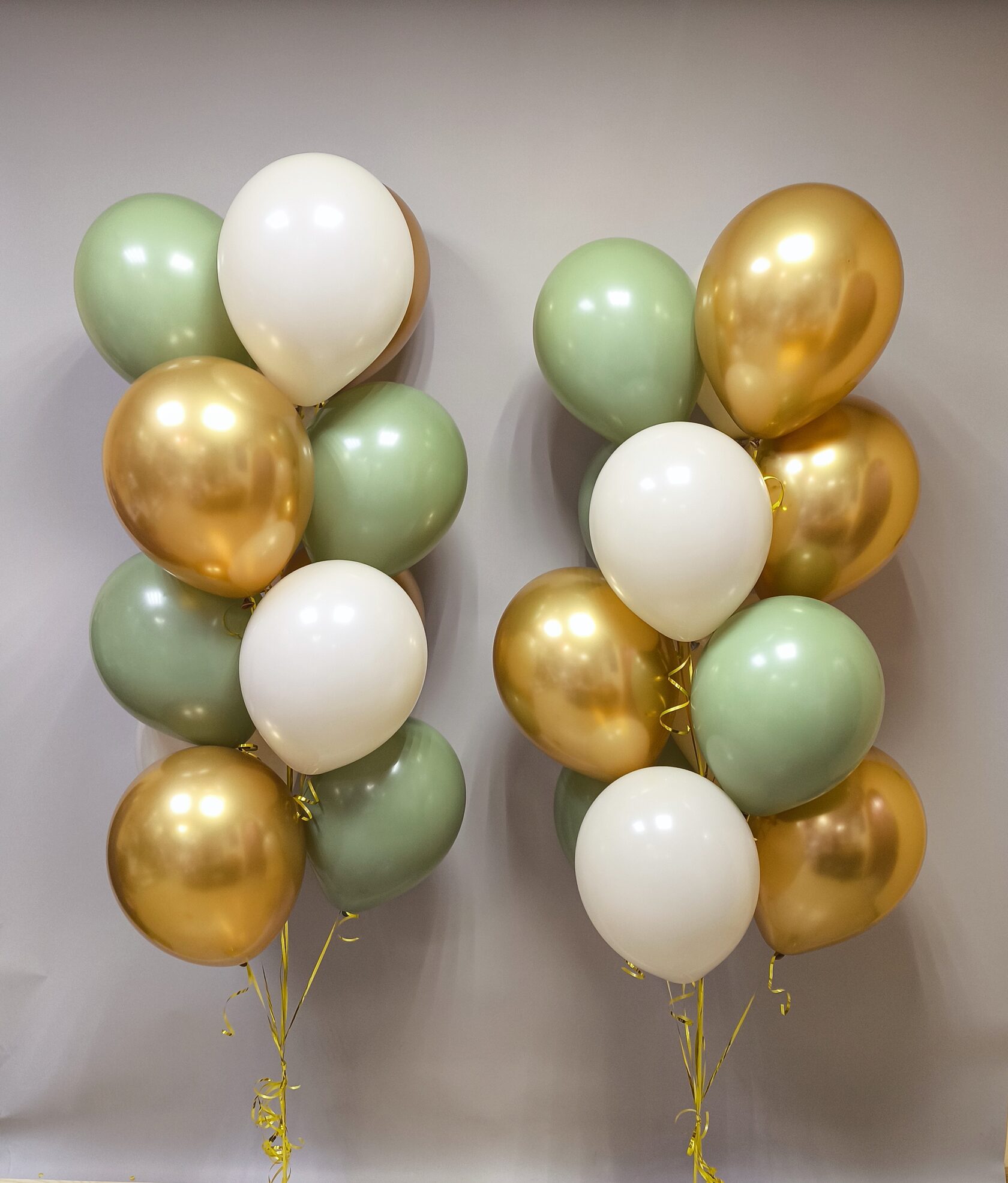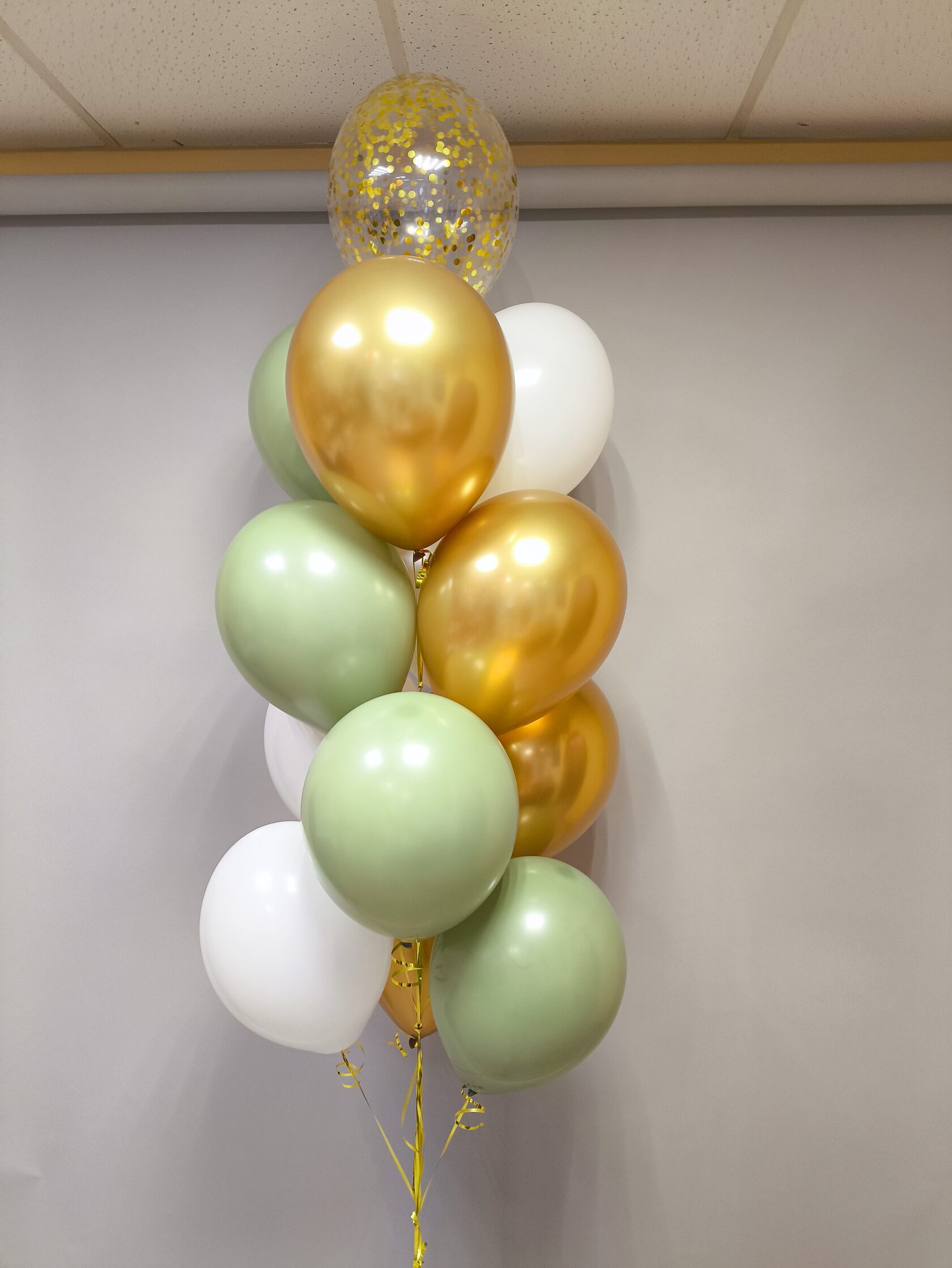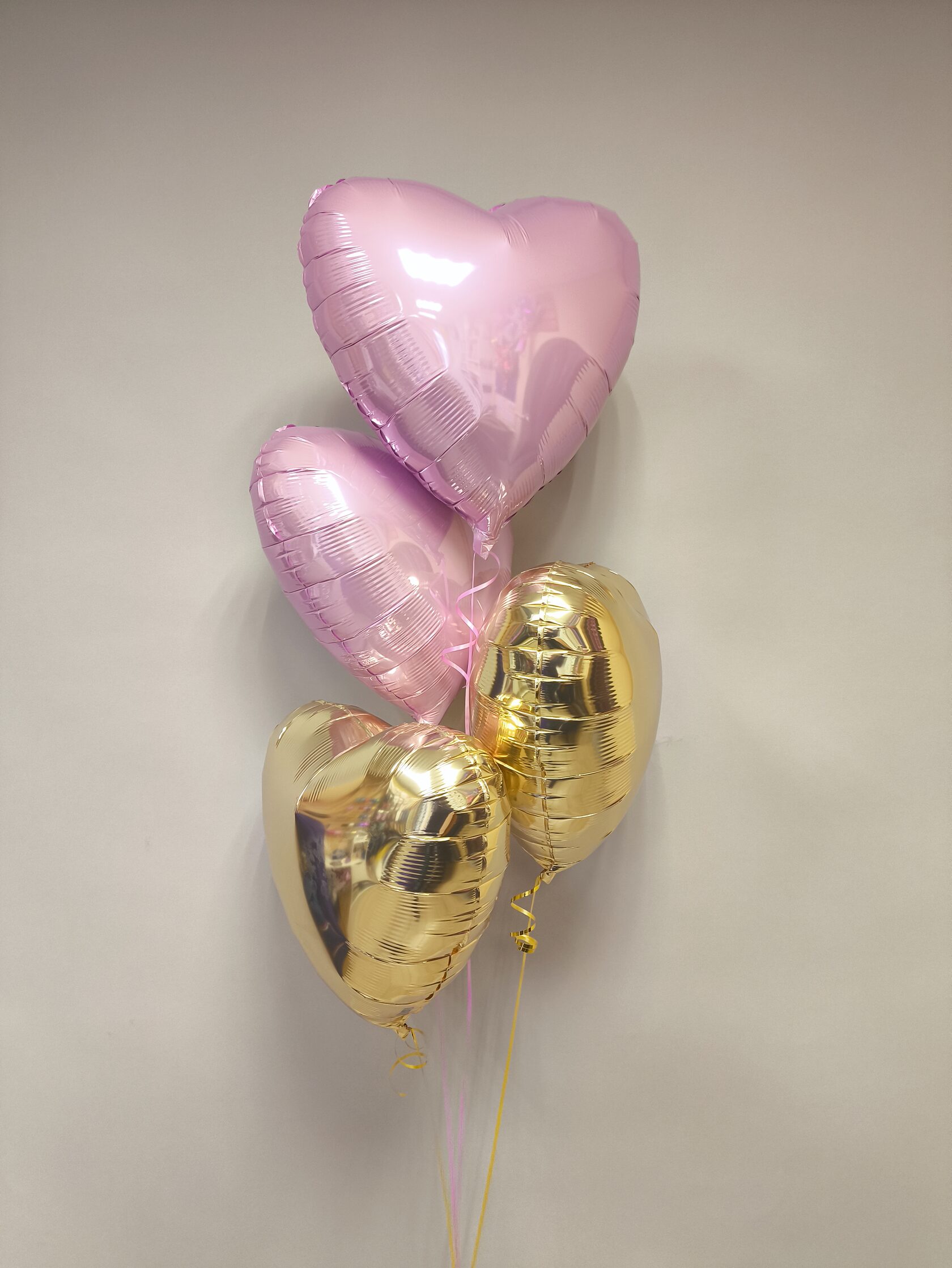 -Шар Звезда 18"/45см с индивидуальной надписью 1шт -Шар Сердце 18"/45см с индивидуальной надписью 1шт -Шары Хром золото 2шт -Шары красные металлик 3шт -Шары белые пастель 3шт