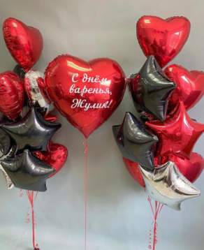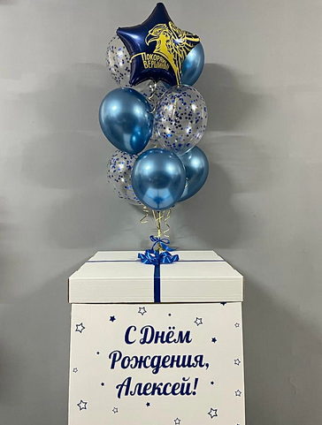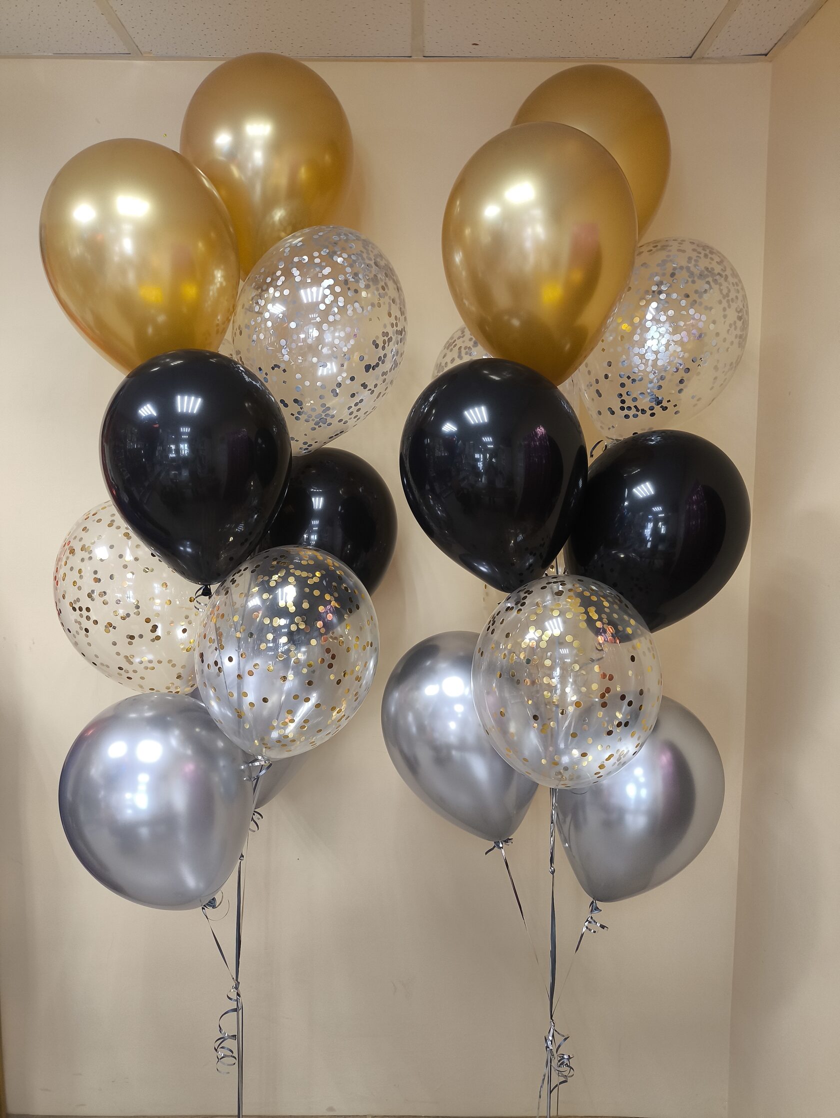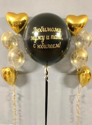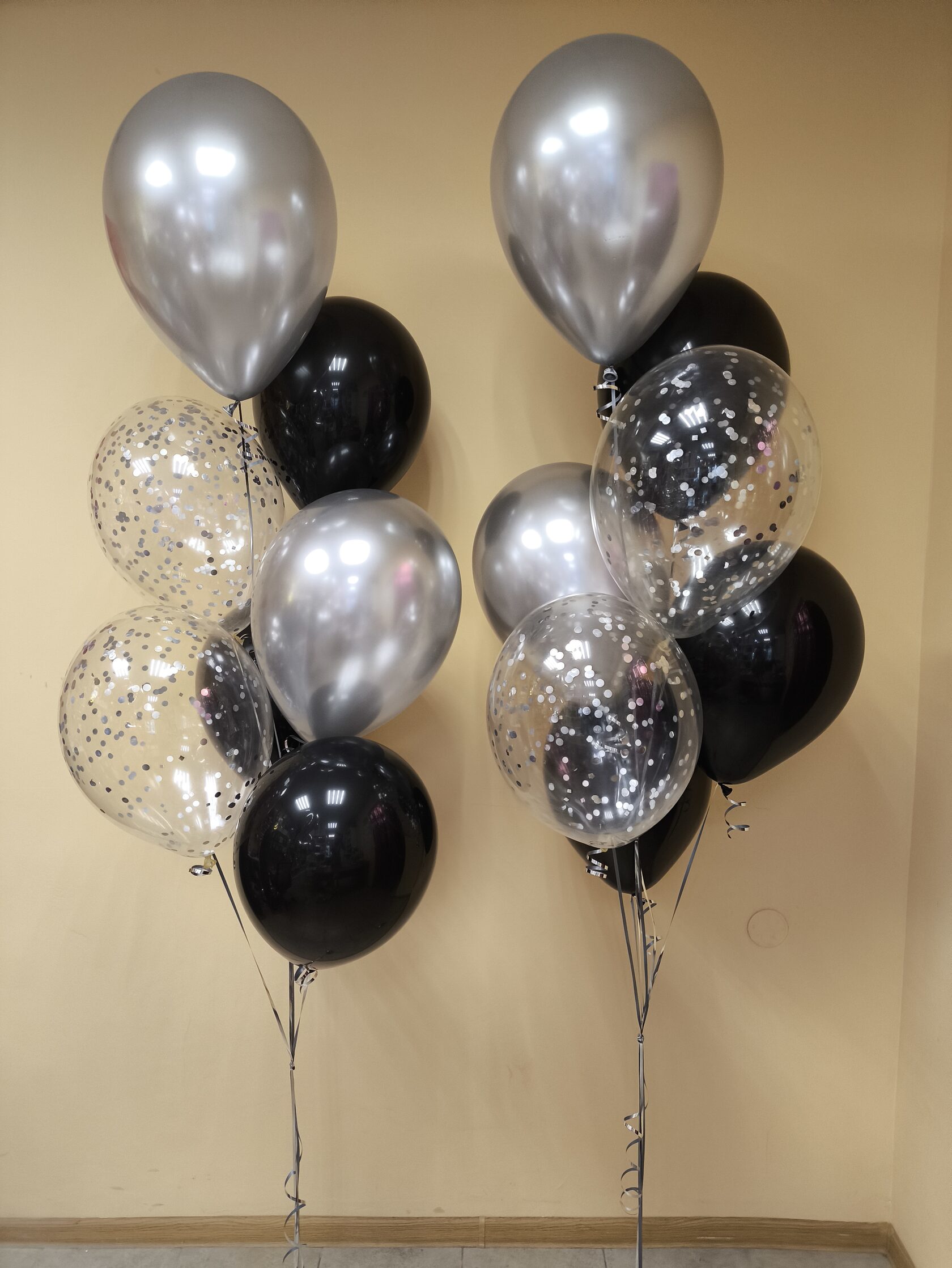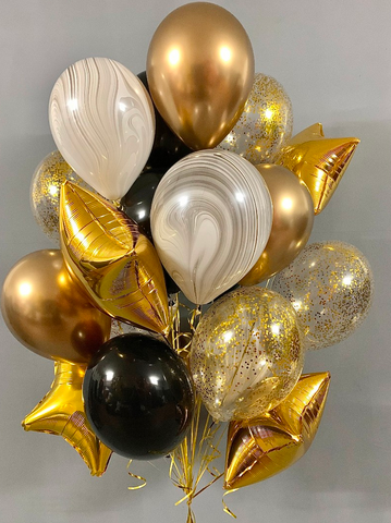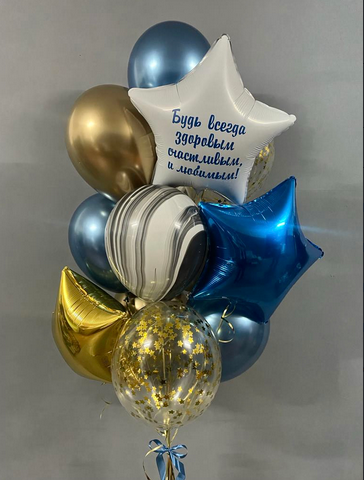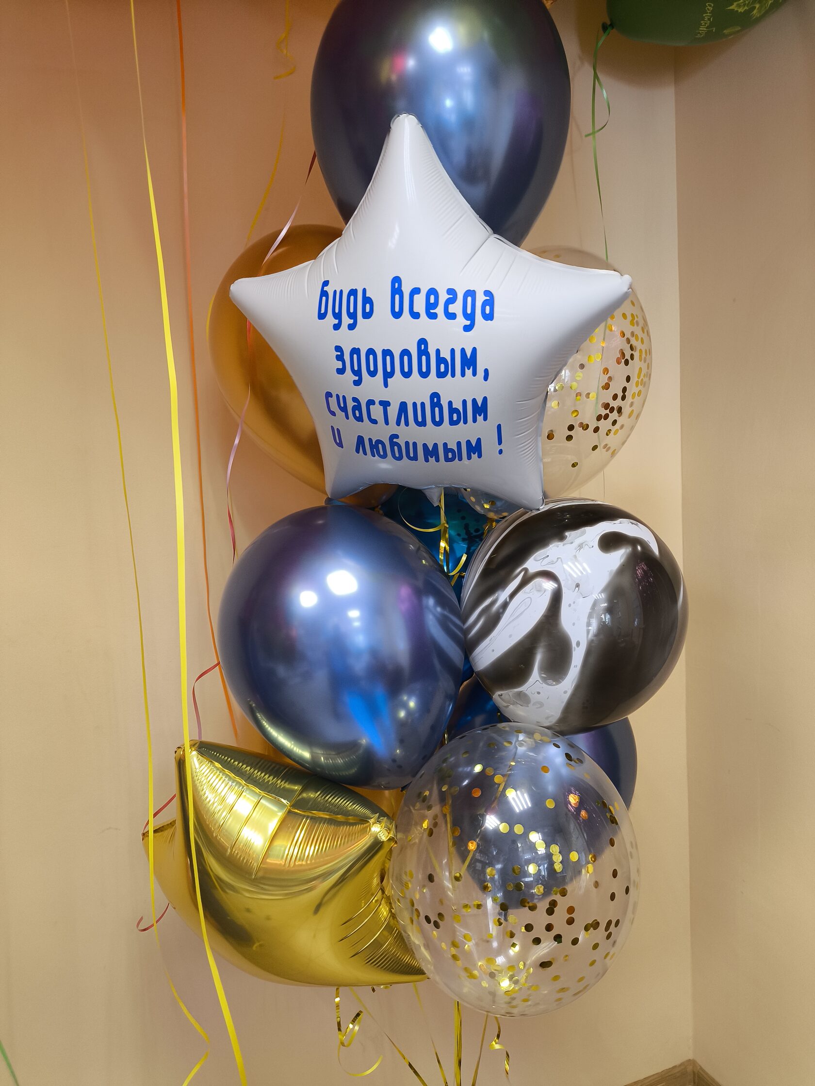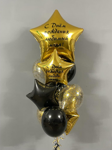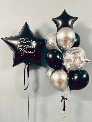 -Шар Звезда 32"/81см с индивидуальной надписью -Шар Звезда 18"/45см с индивидуальной надписью -Шар Звезда 18"/45см -2шт -Шар черный 3шт -Шар с конфетти 3шт