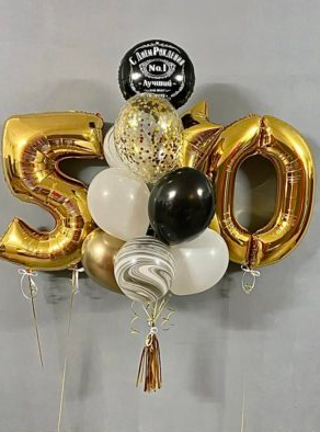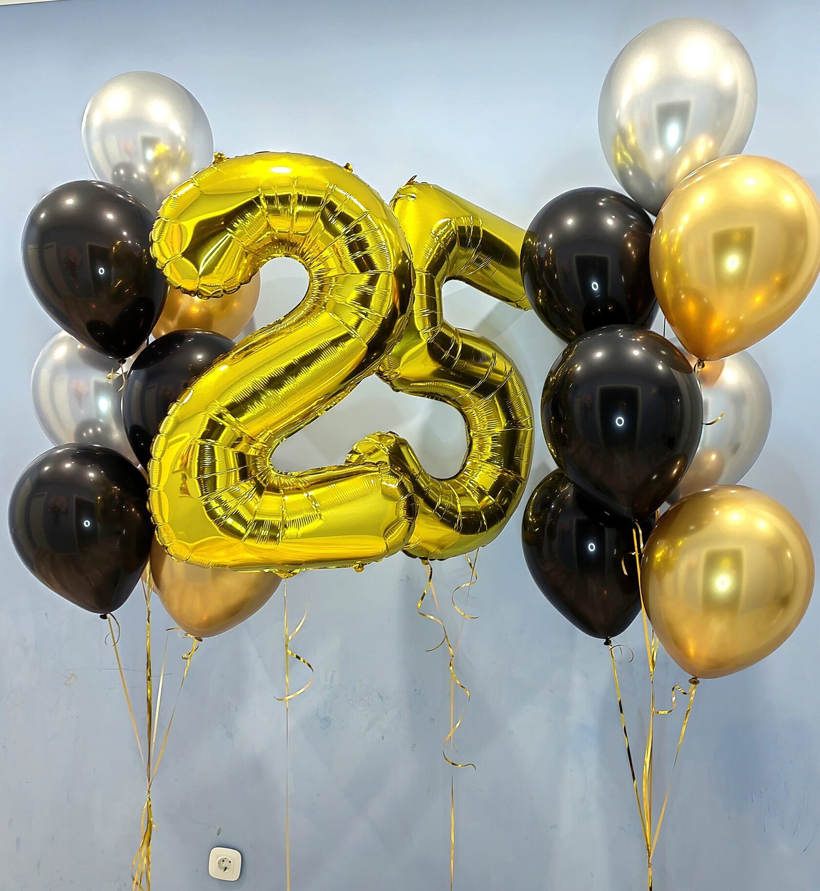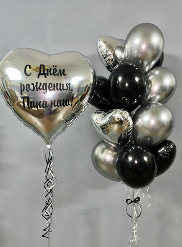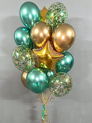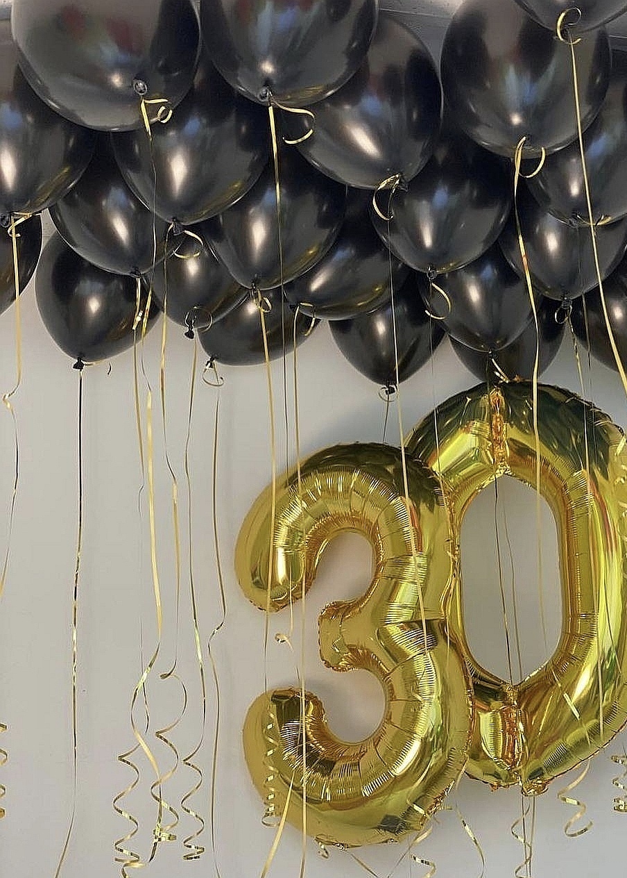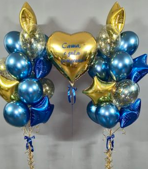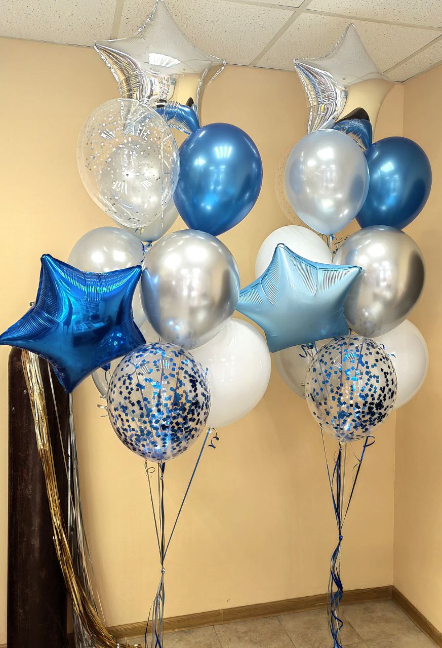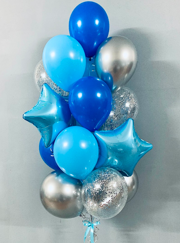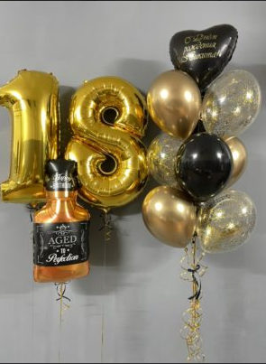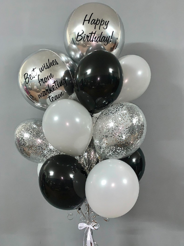 -Шар Звезда 32"/81см с индивидуальной надписью -Шар Звезда 18"/45см с индивидуальной надписью -Шар Звезда 18"/45см -2шт -Шар черный 3шт -Шар с конфетти 3шт