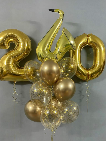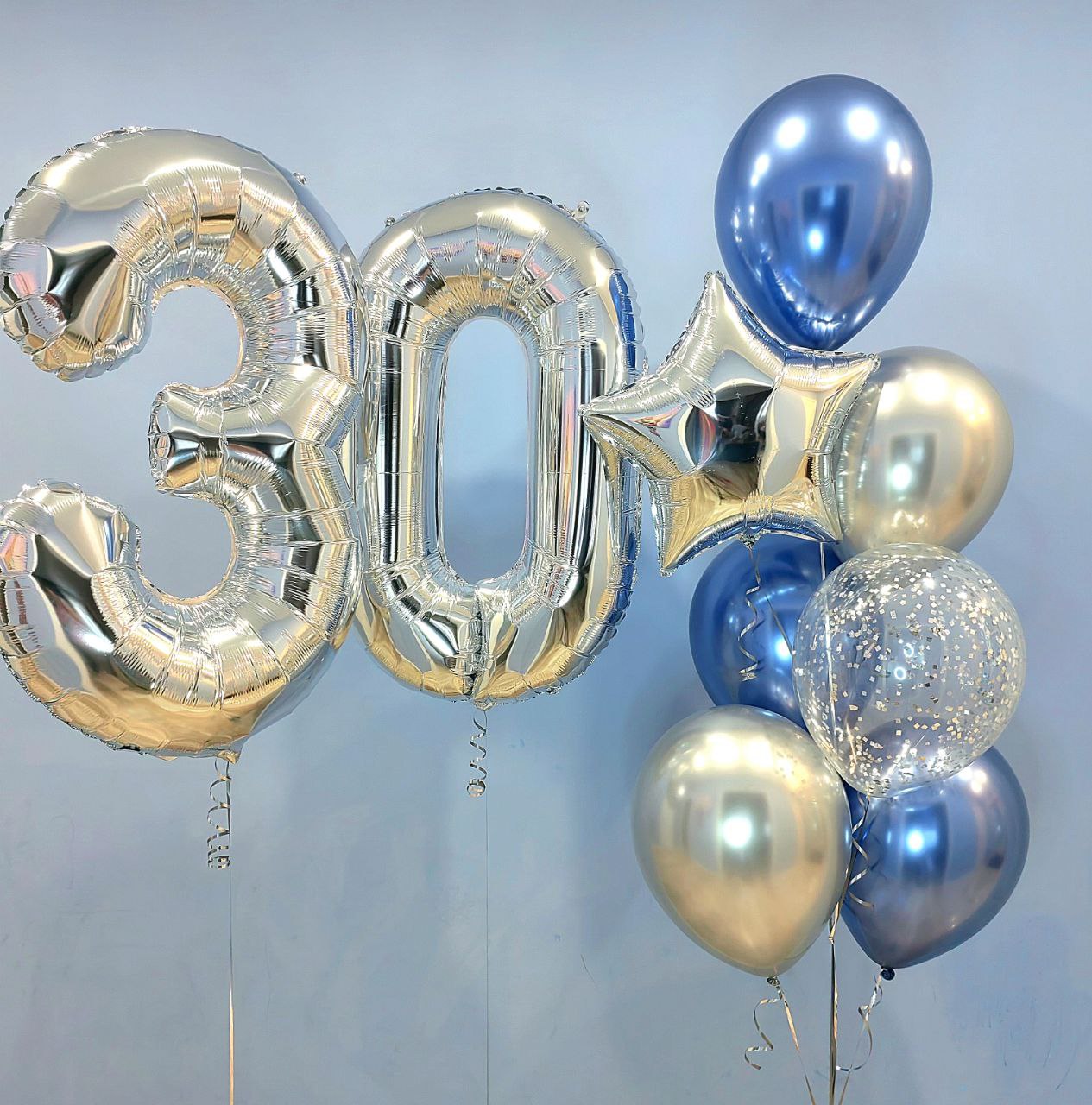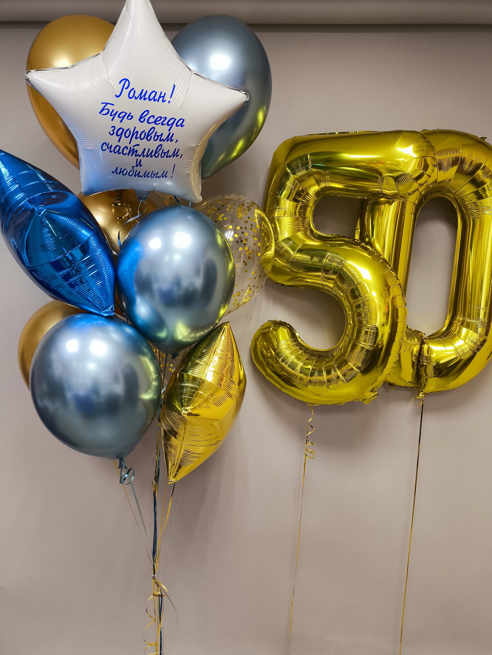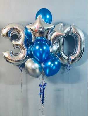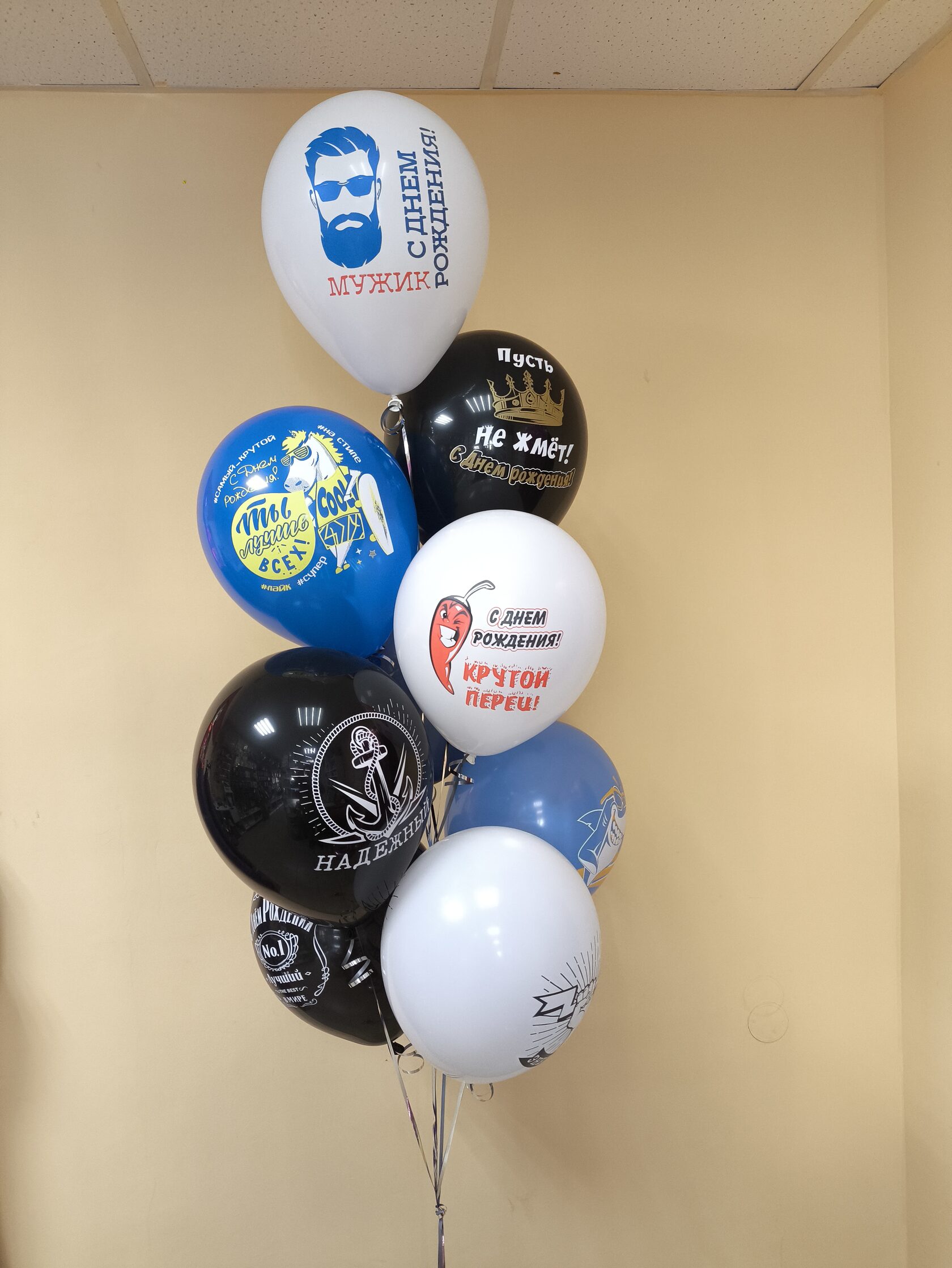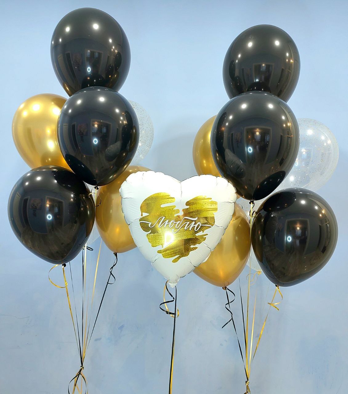 -Шар Звезда 32"/81см с индивидуальной надписью -Шар Звезда 18"/45см с индивидуальной надписью -Шар Звезда 18"/45см -2шт -Шар черный 3шт -Шар с конфетти 3шт