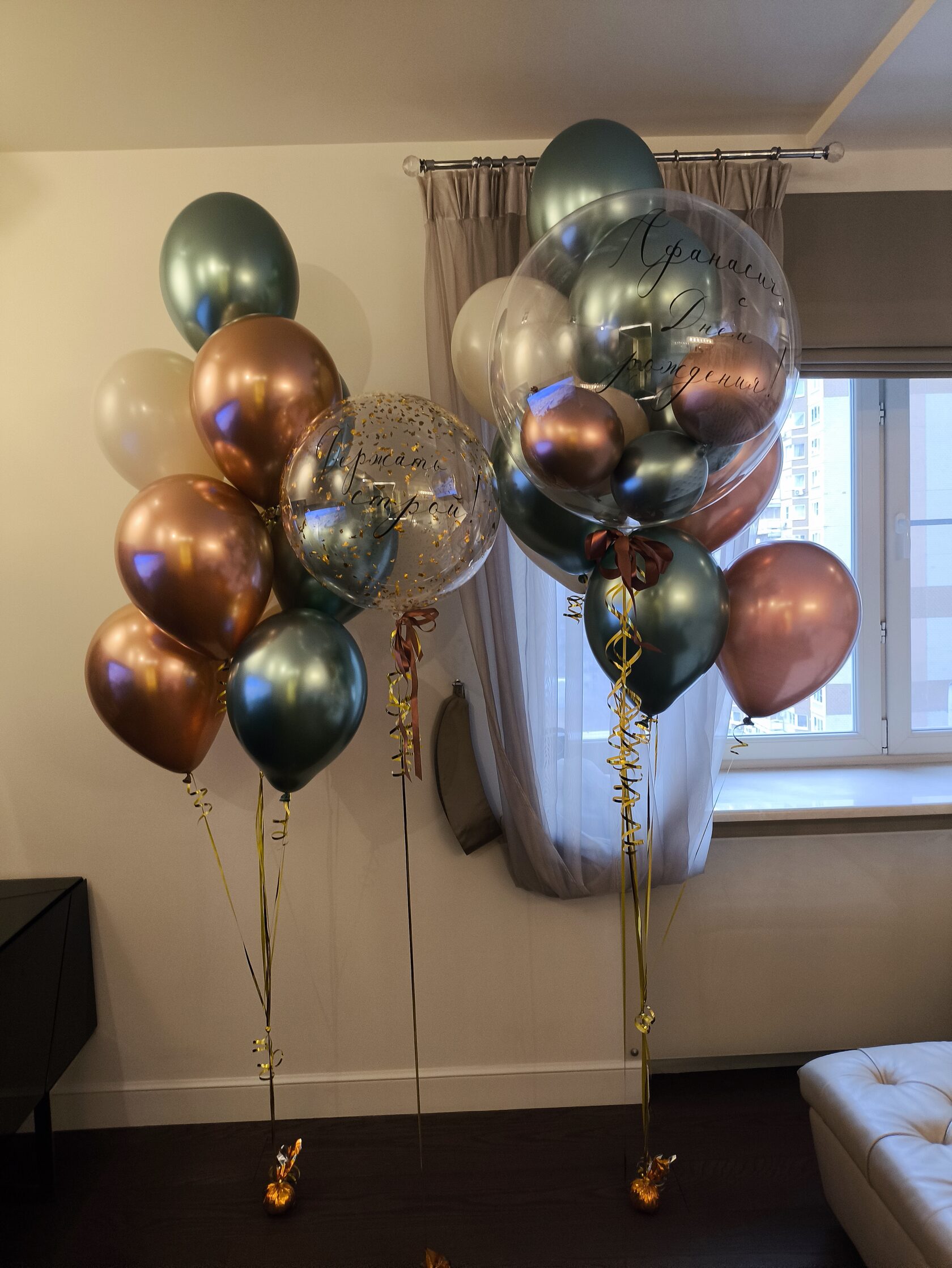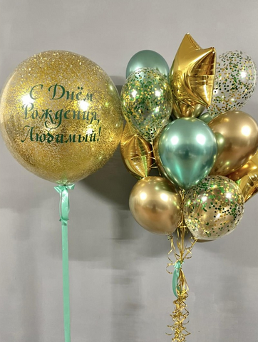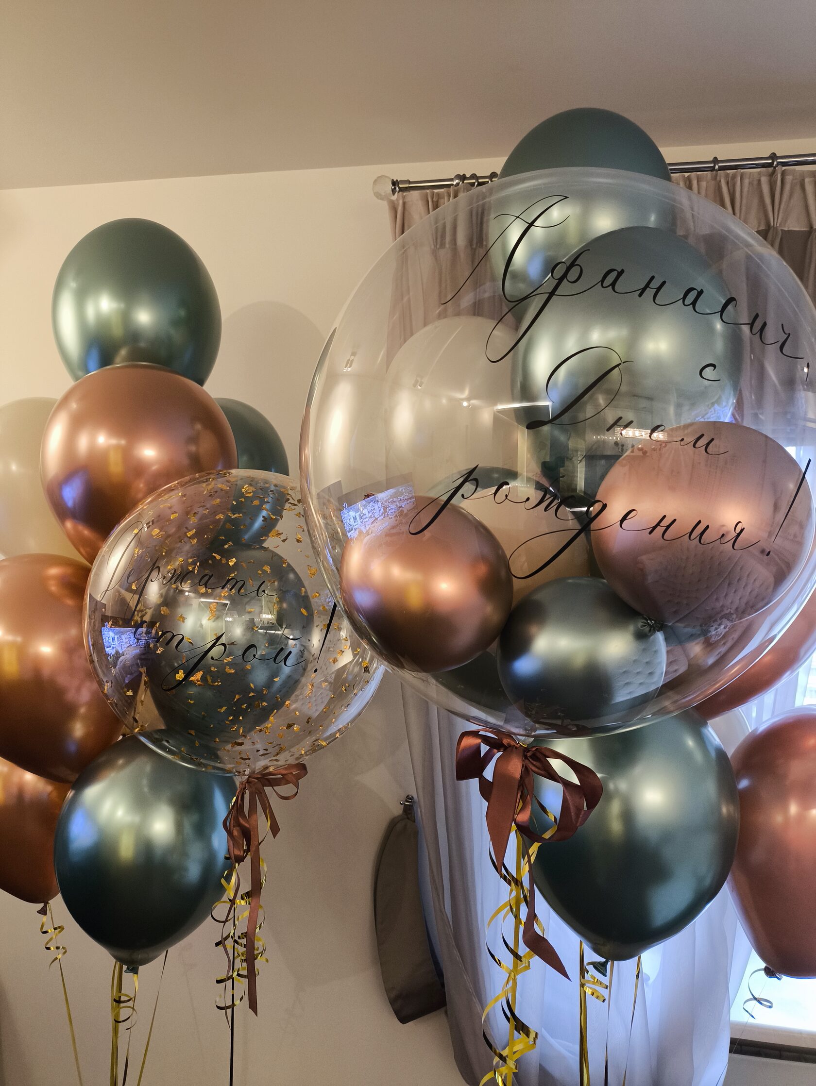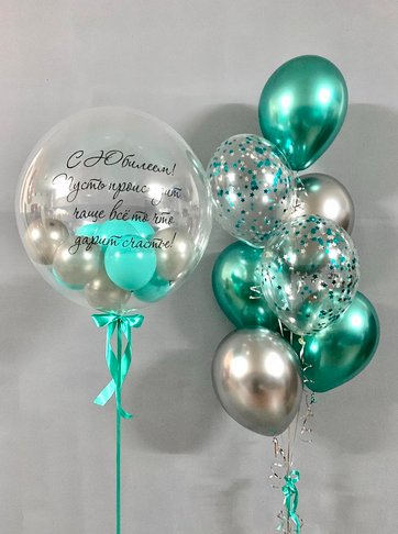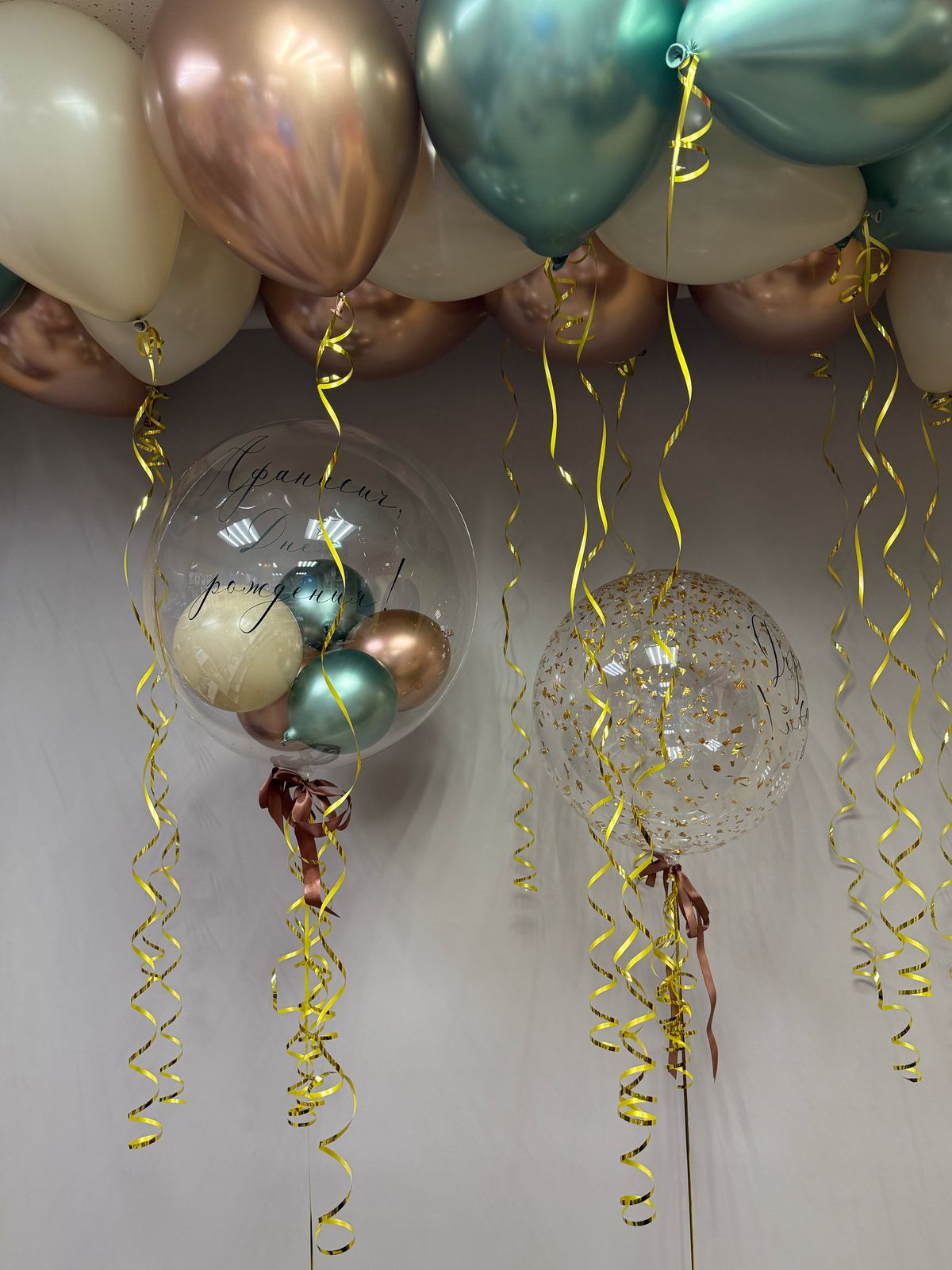 -Шар Баблс 24"/60см с индивидуальной надписью и шариками внутри -Шар Баблс 18"/48см с индивидуальной надписью и конфетти -Шары Хром 10шт -Шары пастель 5шт