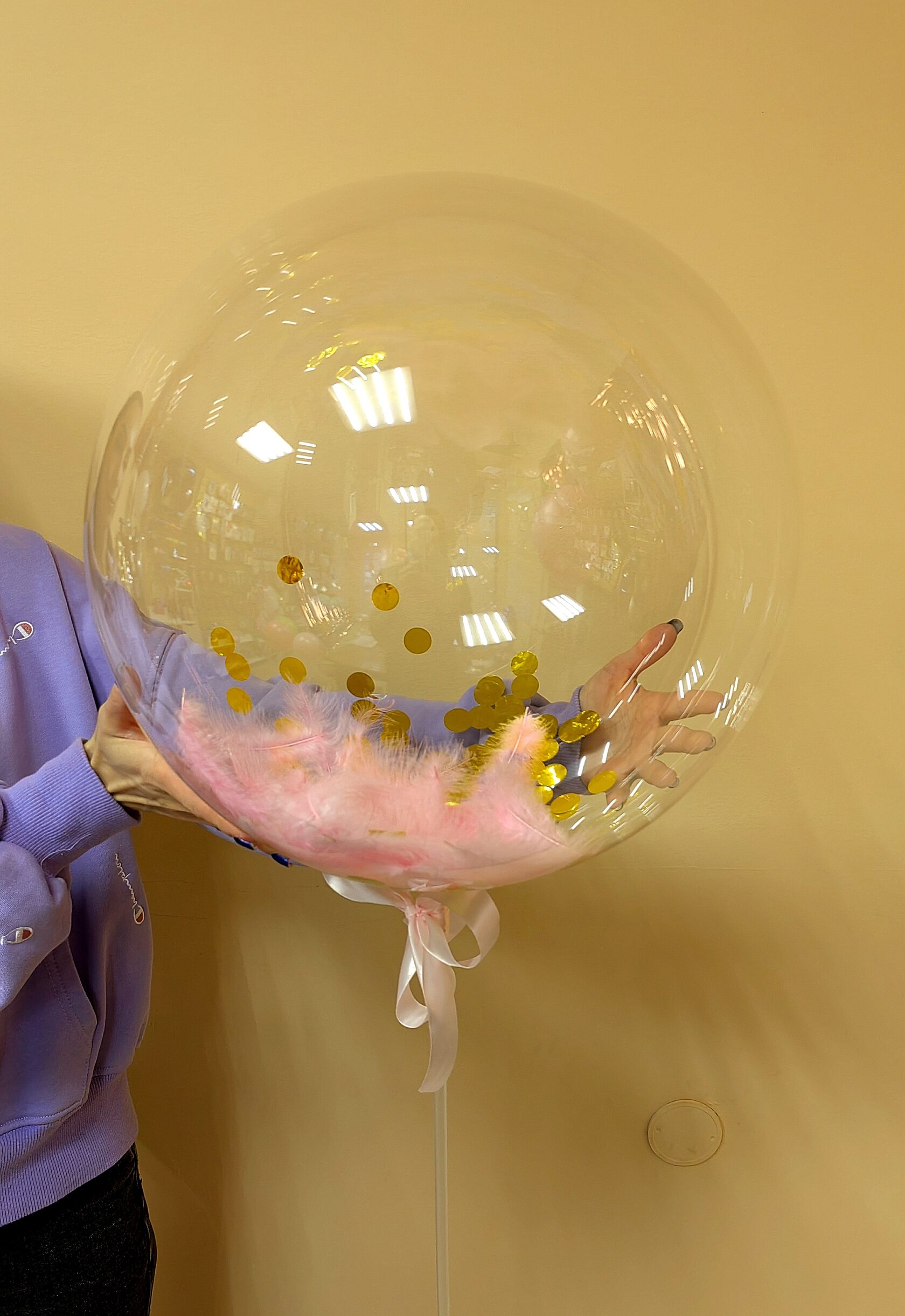 -Шар Баблс 18"/48см с перьями внутри (надувается воздухом)