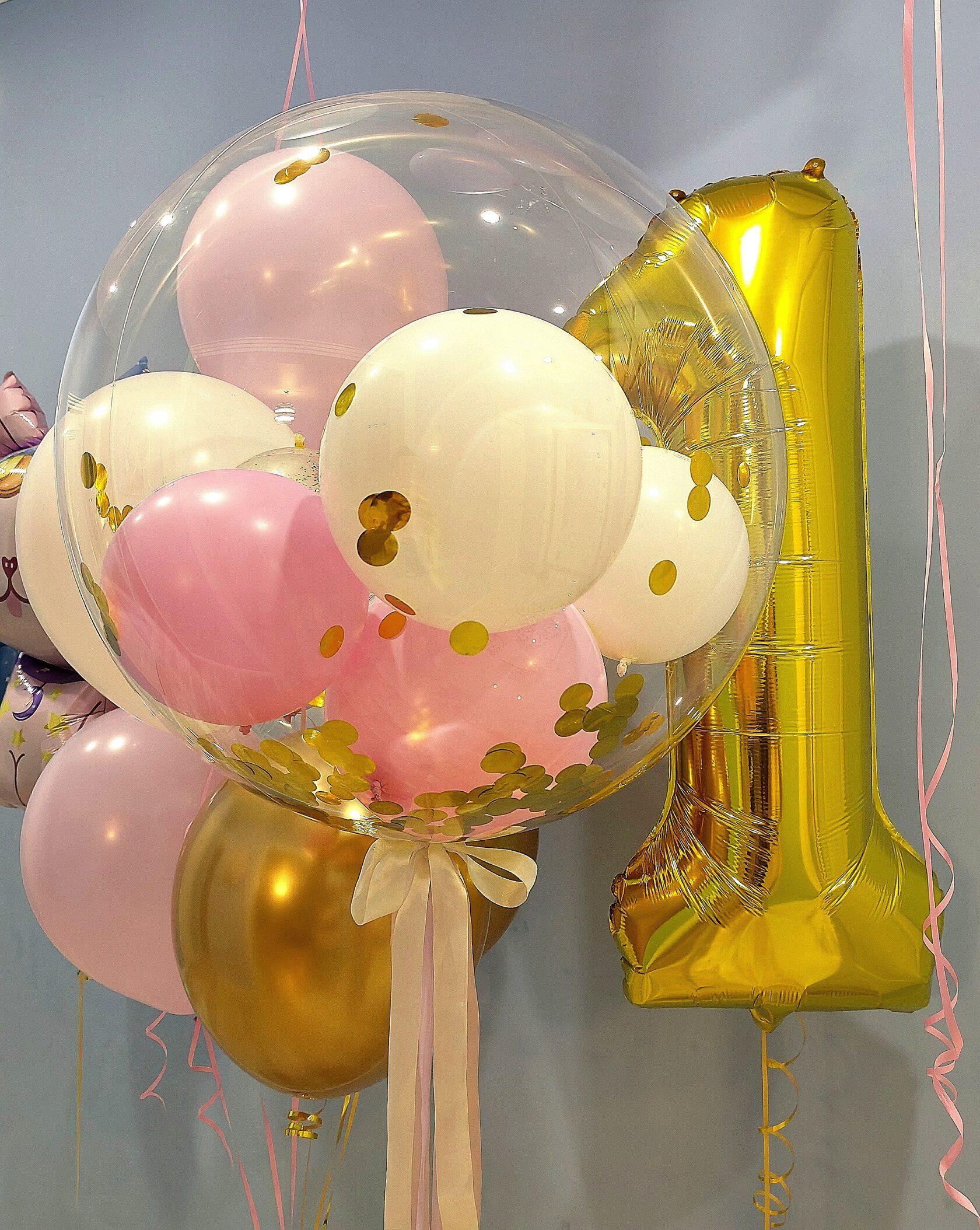 -Шар Баблс 24"/60см с шариами внутри и конфетти