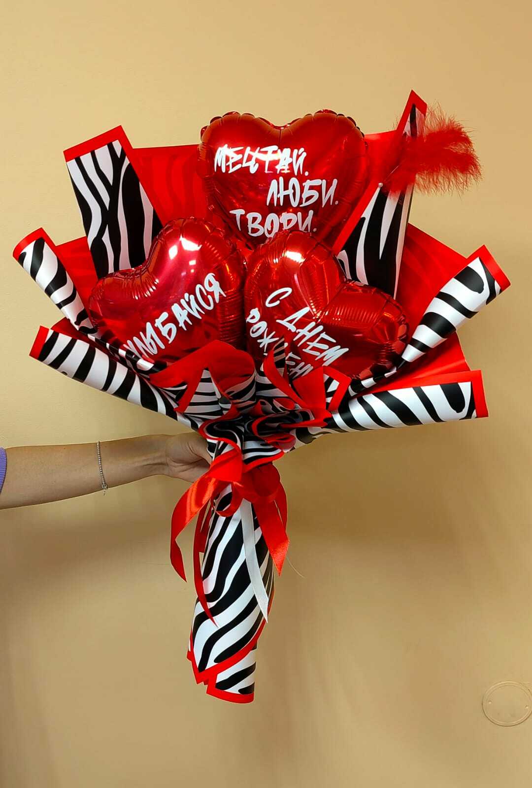 -Три фольгированные сердца 23см с индивидуальными надписями