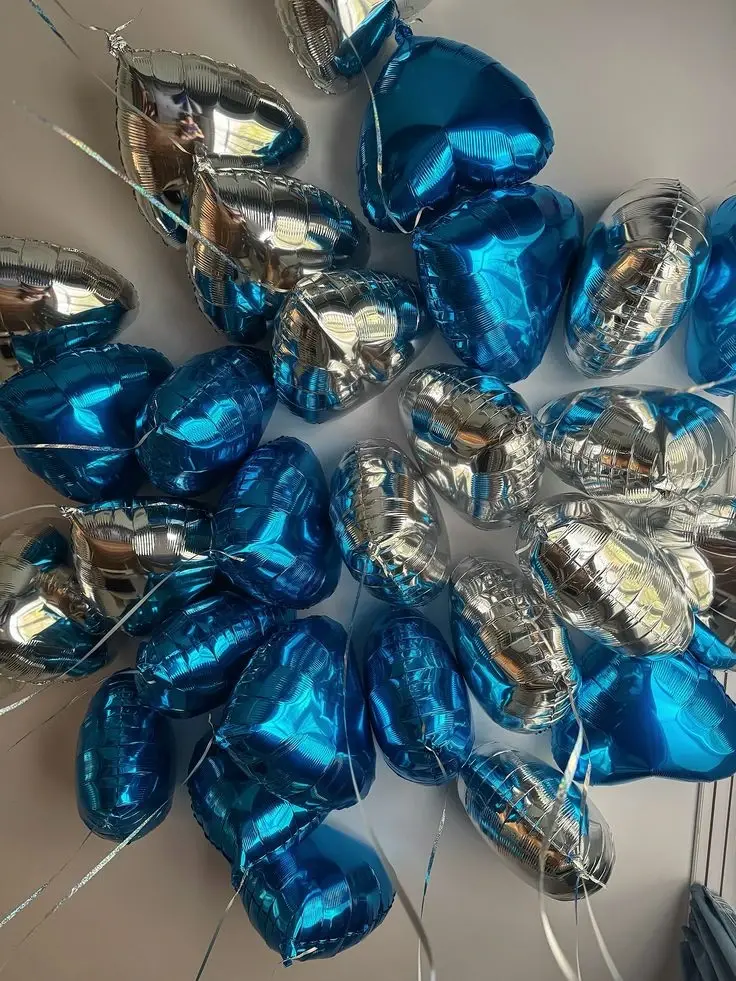 -Шары фольгированные сердце (синий, серебро)